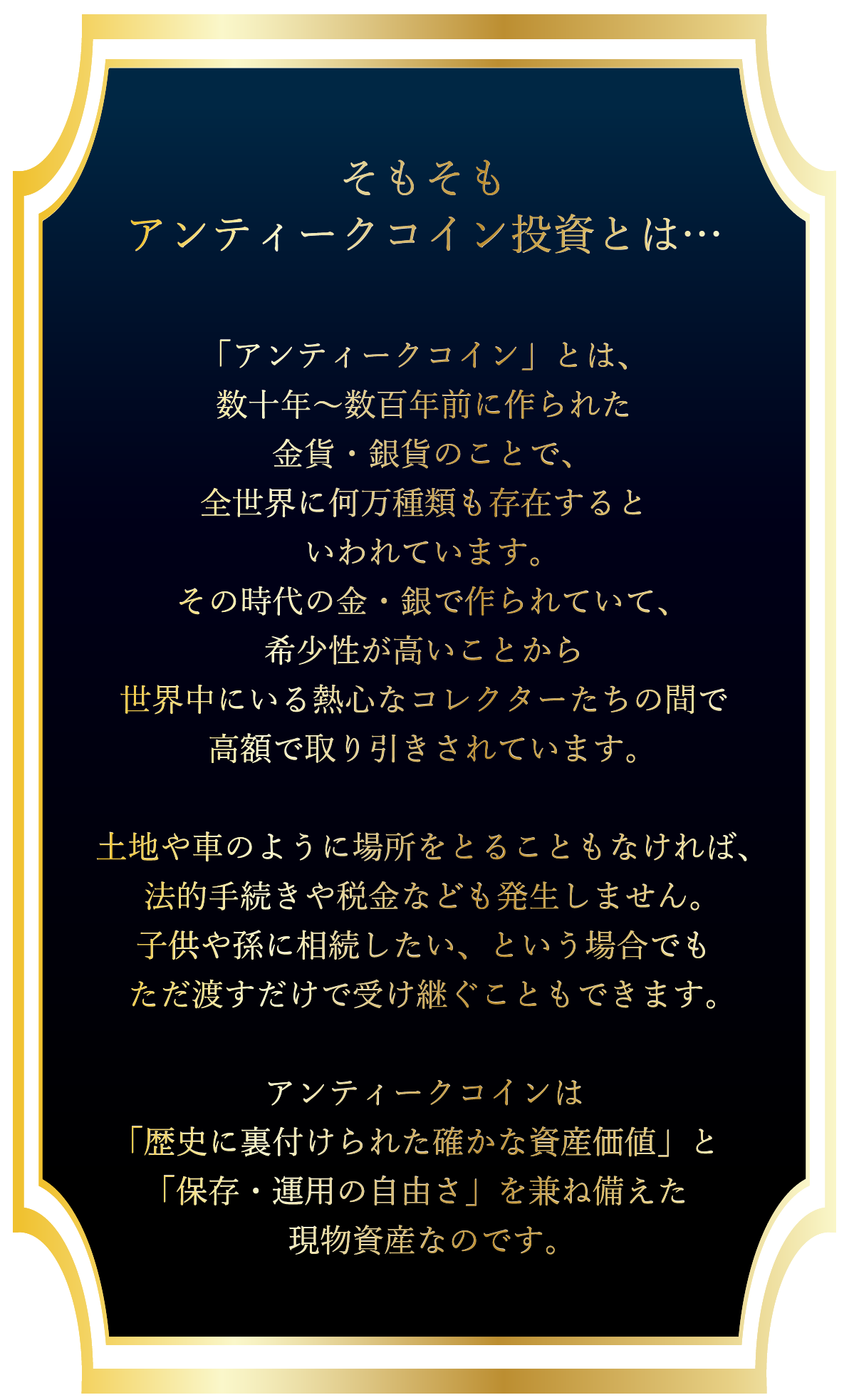 「アンティークコイン投資の経験はあるけど